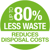 Up to 80% less waste volume, reducing both disposal costs and environmental footprint